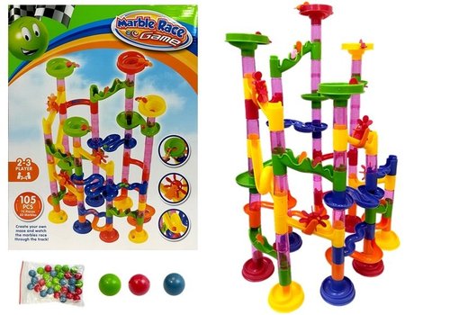 Obserwowanie torów po których ścigają się kulki to zajęcie, które ma w sobie coś hipnotyzującego. Filmiki z olbrzymich torów i dziesiątek ścigających się kulek biją rekordy popularności w serwisach wideo, a dzięki naszemu Torowi przeszkód Twoje dziecko będzie w stanie urządzać takie wyścigi we własnym pokoju! Kolumnowy Tor Wyścigowy składa się z 4 obszarów startowych, w których należy umieścić kulkę będącą jednym z zawodników. Za pomocą pomarańczowej blokady uwalnia się kuleczkę, która rozpoczyna swój wyścig! Po wypuszczeniu kulki zaczyna się ona toczyć po pochyłym torze, przemieszczając się w kierunku podłogi. Liczne otwarte zakręty i spady pozwalają na obserwowanie całej trasy pokonywanej przez swoich zawodników. Każda z kolumn posiada swój własny tor, po którym poruszają się kule. Na torach umiejscowione są m.in wiatraki z łopatkami, a także liczne slalomy. Tor zbudowany jest z kolorowych elementów, dzięki czemu prezentuje się radośnie i ciekawie. Meta trasy znajduje się w dolnej części kolumn - tam właśnie lądują kulki. Wymiary zestawu: 60 cm x 35 cm x 30 Wymiary opakowania: 39 cm x 30 cm x 11 cm
