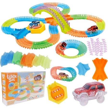 Zestaw toru wyścigowego to kompleksowa i wszechstronna zabawka, która przenosi dzieci w fascynujący świat motoryzacji i szybkich wyścigów. Zestaw składa się z aż 180 elementów, co oferuje niezliczone możliwości tworzenia unikalnych tras wyścigowych, które mogą być dostosowane do preferencji i wyobraźni każdego malucha.