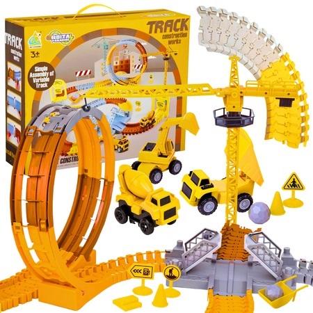 Budowanie toru: Zestaw składa się z aż 180 segmentów drogi, które układać można w dowolny sposób. Niezliczona ilość wariantów sprawi, że zabawa nigdy się nie nudzi. Dziecko, konstruując własną drogę, ćwiczy umiejętności manualne i konstrukcyjne, a przy tym zachęcane jest do eksperymentowania i wcielania w życie swoich unikalnych pomysłów. Dla urozmaicenia toru, dołączone zostały takie elementy jak most zwodzony, czy pętla. Części te można połączyć z resztą segmentów, a następnie sprawdzić jak na trasie poradzą sobie samochody. Segmenty łączy się za pomocą spinek.