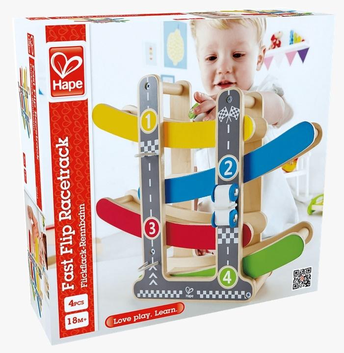 Szybki Zjazd Tor Wyścigowy marki Hape wykonany jest z wysokiej jakości drewna. To zabawka dla calej rodziny - zjeżdżalnia składa się z 4 pochylni, a na każdej z nich znajdują się dwa tory wyścigowe. W zestawie znajdują się 3 autka.