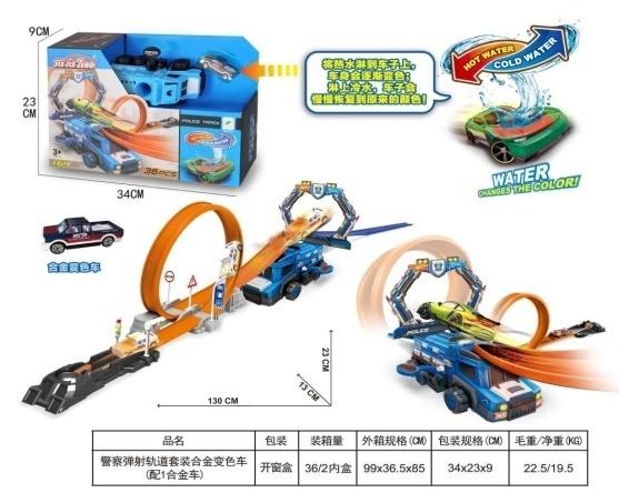 Tor z wyrzutnią o długości 130cm, posiadający auto które po zetknięciu z ciepła/zimną wodą zmienia kolor