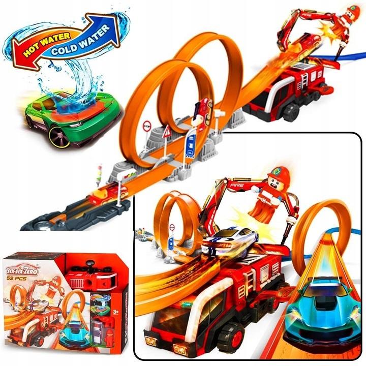 - Długość toru 170 cm! - Skala 1:64 - Zmiana koloru auta po zetknięciu z ciepła/zimną wodą - Potężna wyrzutnia oraz dwie pętle z obrotem 360 stopni - Pojazd inżynieryjny oraz przeszkody - Cały zestaw zawiera to aż 62 akcesoriów (akcesoria m.in : Figurka, akcesoria strażackie, znaki drogowe, naklejki, pojazd inżynieryjny z wyrzutnią, samochód, figurka słonia itd) - Zestaw nie wymaga zasilania bateriami Produkt przeznaczony dla dzieci powyżej 3 roku życia. Zapakowany w kartonowe pudełko.