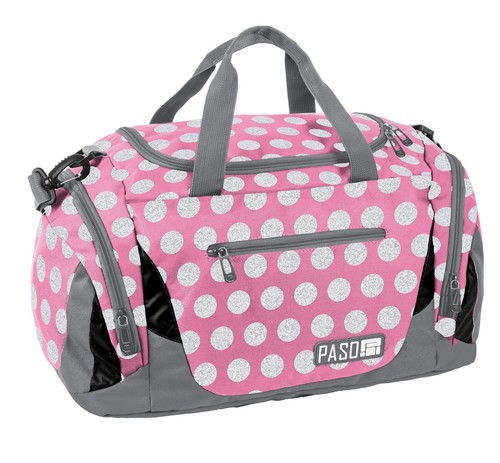 Torba sportowa. Idealna na zajęcia sportowe, fitness bądź krótkie wyjazdy. Pojemna komora główna, mala kieszeń na froncie, 2 kieszenie boczne (w tym jedna na obuwie). Dwa uchwyty do przenoszenia, pasek na ramię z osłonką.
