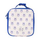 Torba izotermiczna w kolorze beżowym z granatowym wzorem sowy.