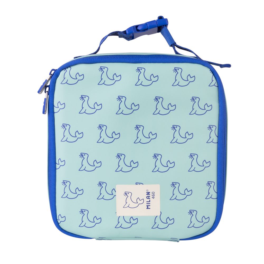 Torba izotermiczna w kolorze zielonym z granatowym wzorem foki.