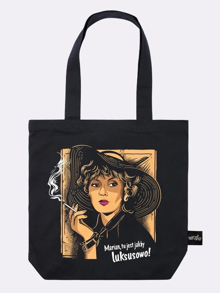 Marian, tu jest jakby luksusowo! Kto z nas nie kocha tej kultowej sceny z panią Wolańską w roli głównej? Powiało PRL-em, ale ten cytat nigdy się nie zestarzeje! Ta scena to prawdziwy symbol humorystycznego podejścia do aspiracji Polaków w tamtych czasach, kiedy luksus miał swoją specyficzną definicję. Prosto z torby zagląda do Ciebie sama pani Wolańska, przypominając nam o czasach, kiedy ekskluzywność miała... pewien urok prowizorki. Choć minęły lata, cytat wciąż bawi, bo w prosty sposób ukazuje, jak rzeczywistość PRL-u często rozmijała się z marzeniami. Jeśli więc chcesz wrócić do tych czasów z przymrużeniem oka i odrobiną nostalgii, ta torba będzie idealnym wyborem! Torba z napisem MARIAN, TU JEST JAKBY LUKSUSOWO! to świetny wybór na co dzień! Kultowy cytat z filmu "Galimatias, czyli kogel-mogel II" może być w Twojej szafie. Szukasz idealnego prezentu? Ta torba materiałowa z napisem MARIAN, TU JEST JAKBY LUKSUSOWO! to doskonały pomysł na upominek zarówno dla męża, jak i dla żony, a także dla wszystkich fanów polskich komedii. Sprawdzi się jako prezent na święta czy urodziny - nie ma lepszego sposobu, by przypomnieć sobie o dawnych czasach w zabawnym wydaniu. Gramatura 280 g/m Nadruk wykonany metodą sitodruku (wysokiej jakości, bardzo trwały) 100% bawełna, torba ekologiczna Zapakowana w szykowną ekokopertę Torba inspirowana filmem "Galimatias, czyli kogel-mogel II" W środku torby pojemna kieszonka na akcesoria Elegancka metka boczna Wymiary: 42 45,5 8 cm, ucho: 65 4 cm (wymiary mogą się różnić do 1,5 cm).