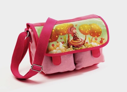 Materiałowa torebka z jedną dużą kieszenią i dwoma mniejszymi. Zapinana na magnesowe zapinki. Pasek z możliwością regulacji. Wiek dziecka: 4 lata +