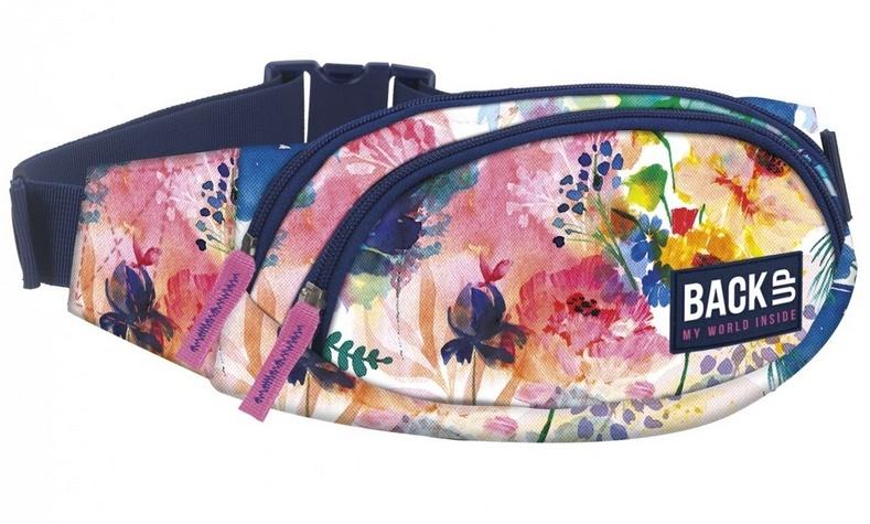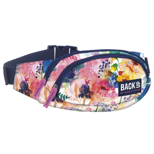 Torba na biodra BackUP model A 28 w nasycone kolorami, akwarelowe kwiaty przywodzące na myśl romantyczną, wiosenną łąkę, wykończony granatowymi zamkami, które dopełniają całości. Wyposażenie: - 2 kieszenie na zamek z przodu - 1 bezpieczna kieszeń z tyłu, - duża klamra i szeroki pasek z estetycznymi gumkami, ułatwiającymi użytkowanie. Nerka pomieści nawet duże telefony a niewypełnioną łatwo ukryć pod ubraniem. Oryginalny krój pozwala na praktyczne użytkowanie. Wymiar: 25 x 12 x 6 cm