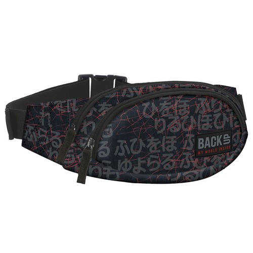 Torba na biodra BackUP model A 47 czarne tło, japońskie litery w szarym kolorze i czerwone rysy, wzór jednocześnie spokojny, ale z niewątpliwą nutką szaleństwa, którą podkręcają czerwone dodatki. Wyposażenie: - 2 kieszenie na zamek z przodu - 1 bezpieczna kieszeń z tyłu, - duża klamra i szeroki pasek z estetycznymi gumkami, ułatwiającymi użytkowanie. Nerka pomieści nawet duże telefony a niewypełnioną łatwo ukryć pod ubraniem. Oryginalny krój pozwala na praktyczne użytkowanie. Wymiar: 25 x 12 x 6cm.