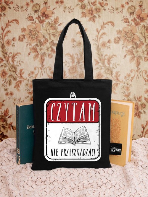 Torba na książki CZYTAM - NIE PRZESZKADZAĆ z dwustronnym nadrukiem poleca się na prezent dla introwertyka, który każdą wolną chwilę spędza w towarzystwie książek.