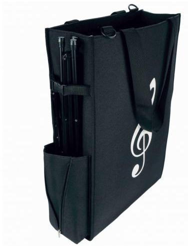 Wspaniała torba na nuty idealna dla każdego muzyka. Czarna, z motywem klucza wiolinowego po obu stronach, o wymiarze 37 x 55 x 14 cm. Z boku torby znajduje się specjalna przegródka, w której zmieści się składany pulpit. Dodatkowo dołączono dłuższy, regulowany pasek na ramię.