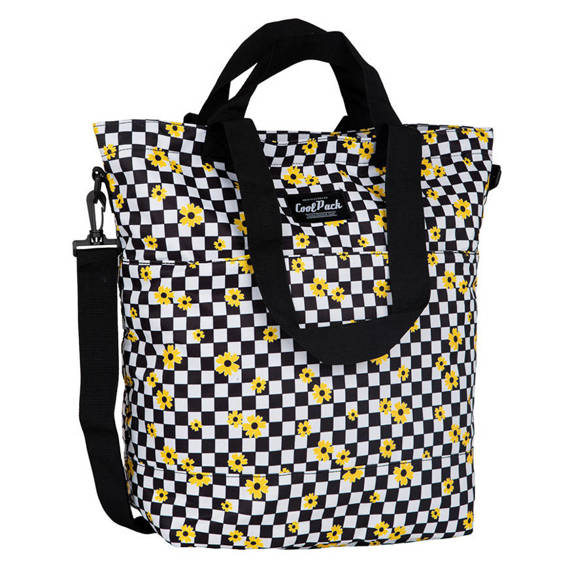 Torba Coolpack CP Soho przeznaczona jest dla wszystkich kobiet, które lubią praktyczne rozwiązania w modnej oprawie. Oryginalne wzory toreb idealnie wpisują się w najnowsze trendy streetwearu. Uroku dodają im również wzmocnienia przy paskach wykonane ze skóry ekologicznej. Torba posiada trapezowy kształt dzięki czemu można łatwo dotrzeć do jej zawartości. Dwa uchwyty górne zapewniają komfort w noszeniu torby na przedramieniu lub w ręce, dłuższy pasek pozwala na noszenie torby na ramieniu. Bez problemu zmieścisz w nią format A4, a więc można ją nosić do szkoły, pracy, na uczelnię. Torba Soho charakteryzuje się dużym rozmiarem, dzięki czemu doskonale sprawdzi się też jako torba treningowa, zakupowa, a nawet podróżna.