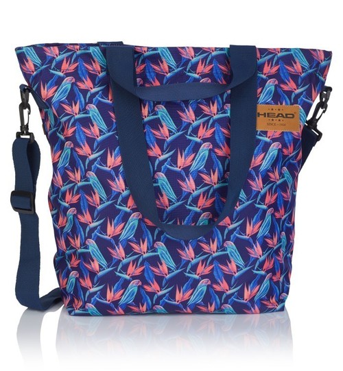 1 duża komora • 1 kieszeń wewnętrzna zapinana na zamek • karabińczyk do kluczy • regulowany pas na ramię z możliwością odpięcia • wyprofilowane metalowe uchwyty do suwaków • tkanina: polyester 600D x 600D • kolorowa, zadrukowana podszewka • wymiary: 48 x 41.5 x 30 cm