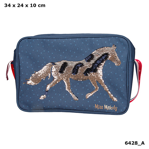 Niebieska torba na ramię z motywem konia.Wykonana z dwukolorowych cekinów.