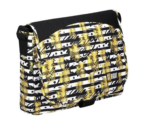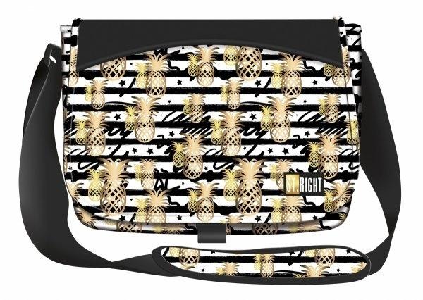 Funkcjonalność: 1 komora 3 kieszenie zewnętrzne 1 dodatkowa kieszeń wewnętrzna Komfort i bezpieczeństwo: materiał wodoodporny usztywniony spód miękkie szelki miękki pasek z regulacją długości naramiennik znajdujący się na pasku, zwiększający komfort noszenia
