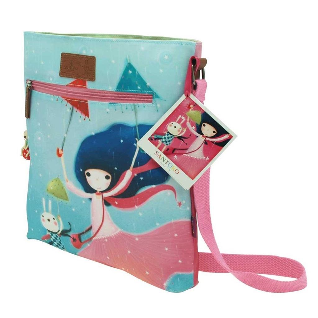 Praktyczne może być piękne! Torba na skos, posiada zewnętrzną kieszeń z suwakiem. Wykończona podszewką z wzorem. Część główna również posiada kieszeń na suwak. Torba może być noszona na skos, na miękkim pasku, długość paska można regulować. Do torby przymocowana jest zawieszka z królikiem. Materiał zewnętrzny : bawełna, nadruk: pvc, podszewka : poliester , wykończenie : poliurentan, pasek : bawełna.
