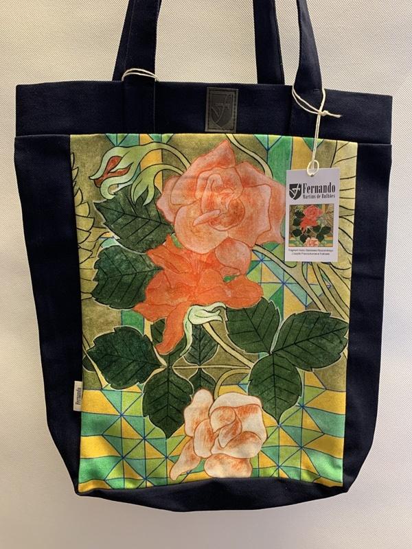 Torba - typu shopper - z tyłem i bokami w kolorze ciemnego granatu zadrukowana oryginalną, niepowtarzalną grafiką w pięknych barwach, przedstawiającą fragment polichromii autorstwa Stanisława Wyspiańskiego, znajdującej się w bazylice Franciszkanów w Krakowie.