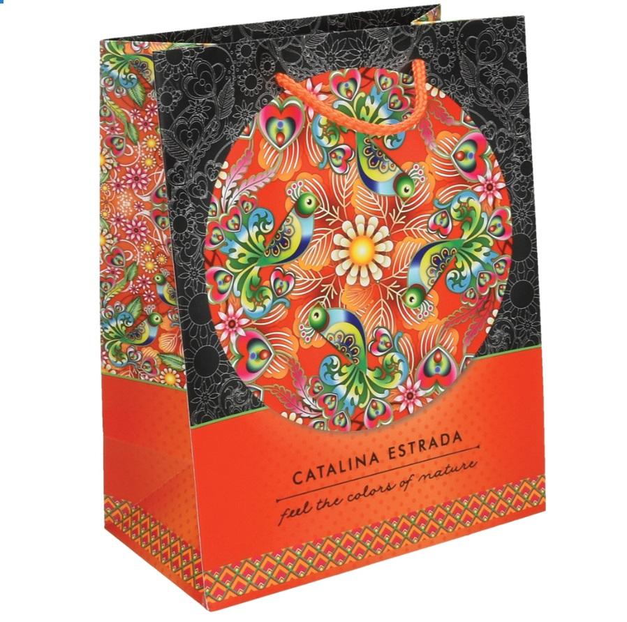 Torba papierowa, matowa na licencji Catalina Estrada. Jumbo, wymiary: 33x45,7x10,2 cm. Pakowane po 10 szt. mix wzorów w paczce.
