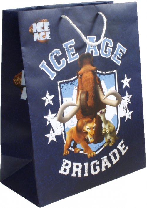 Torba papierowa, matowa na licencji Ice Age. Jumbo, wymiary: 33x45,7x10,2 cm. Pakowane po 10 szt. mix wzorów w paczce.