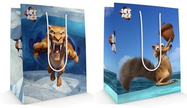 Torba papierowa, matowa na licencji Ice Age. Mała, wymiary: 17,8x22,9x9,8 cm Pakowane po 10 szt. mix wzorów w paczce.