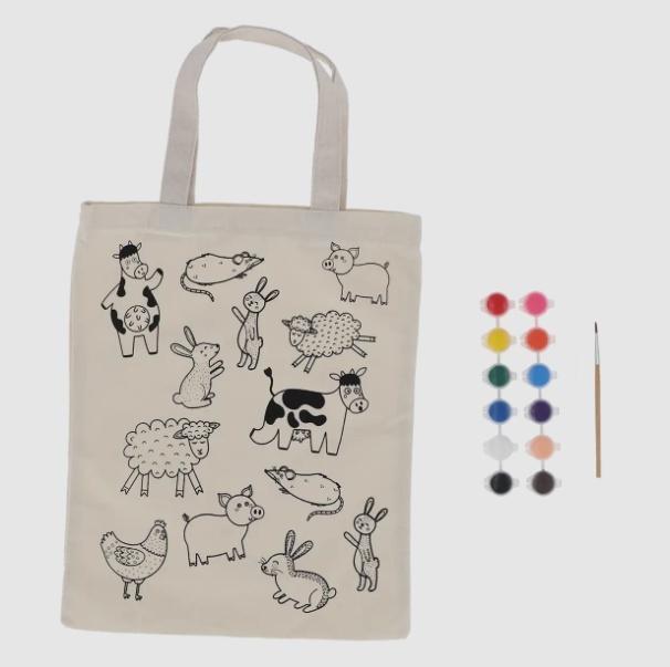Ta torba zachęca do samodzielnego malowania i ozdabiania motywów zwierząt z farmy - takich jak kury, świnki, owce czy krowy - wykorzystując farbki i pędzelek (zestaw zawiera wszystkie potrzebne elementy do od razu rozpoczęcia zabawy). Dzięki temu dzieci rozwijają swoją wyobraźnię, koordynację ręka-oko oraz poczucie artystyczne.