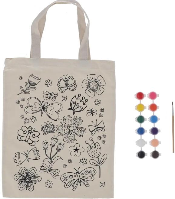 Ta torba zachęca do samodzielnego malowania i ozdabiania motywów kwiatowych wykorzystując farbki i pędzelek (zestaw zawiera wszystkie potrzebne elementy do od razu rozpoczęcia zabawy). Dzięki temu dzieci rozwijają swoją wyobraźnię, koordynację ręka-oko oraz poczucie artystyczne.