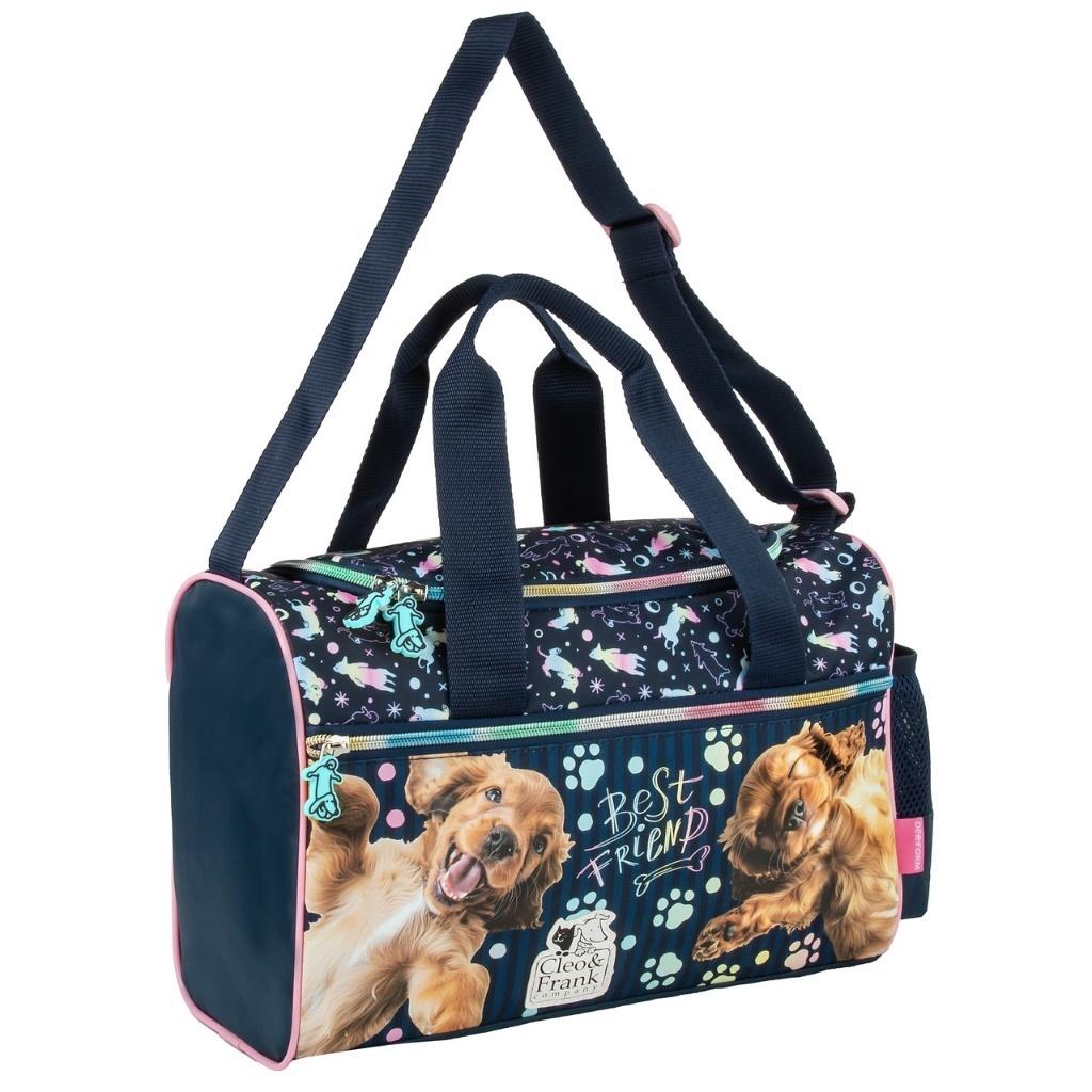 Pojemna torba podróżna z przednią kieszenią, zamykana na zamek. Dodatkowa wewnętrzna klapka pozwala na usztywnienie dna torby. Idealna na basen, zajęcia sportowe, krótką podróż. Posiada regulowany pasek na ramię, dwa uchwyty do noszenia torby w ręce oraz boczną zewnętrzną kieszonkę np. na bidon.