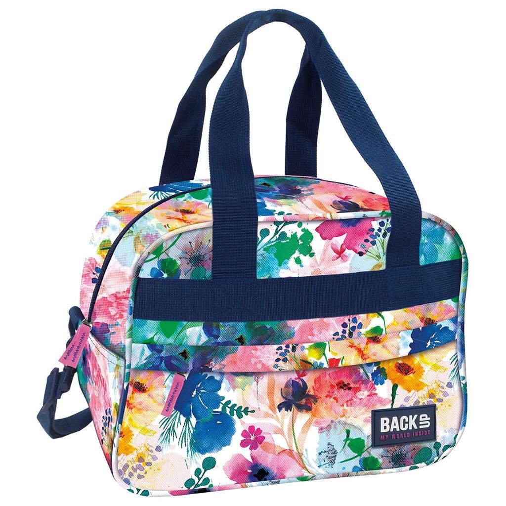 Torba podróżna BackUP model A 28 w nasycone kolorami, akwarelowe kwiaty przywodzące na myśl romantyczną wiosenną łąkę, wykończona granatowymi paskami, które dopełniają całości. Idealna wprost torba na fitness, basen czy podczas podróży. Stworzona z myślą o uczennicach jak i aktywnych kobietach. Wygodna torba, która pomieści podręczne, osobiste przedmioty takie jak telefon komórkowy, klucze czy portfel. Posiada dwie kieszenie zapinane na zamek. Szeroki pasek gwarantuje komfort. Bardzo wygodny kształt i modne wzory. Wyposażenie: 1 zapinana komora 1 kieszeń na zamek z przodu 1 bezpieczna kieszeń wewnątrz na portfel czy klucze. Rozmiar: 36x 26 x 20 cm