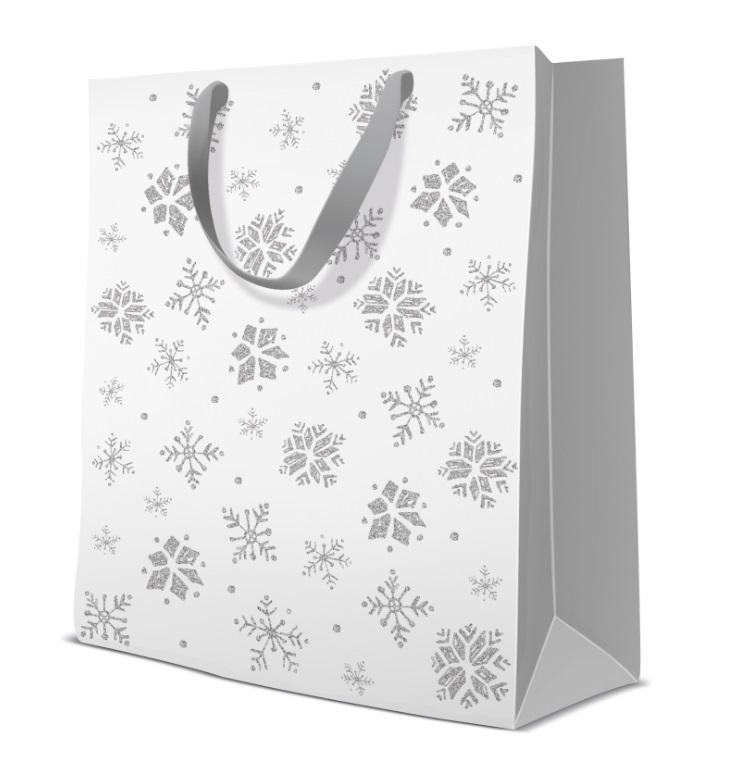 Opakowanie Torba premium Brokatowe śnieżki L Boże Narodzenie