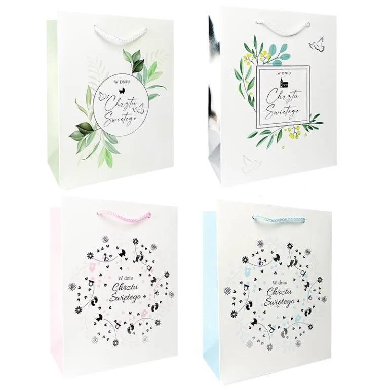 Torby prezentowe bogato ozdobione srebrną lub złotą folią