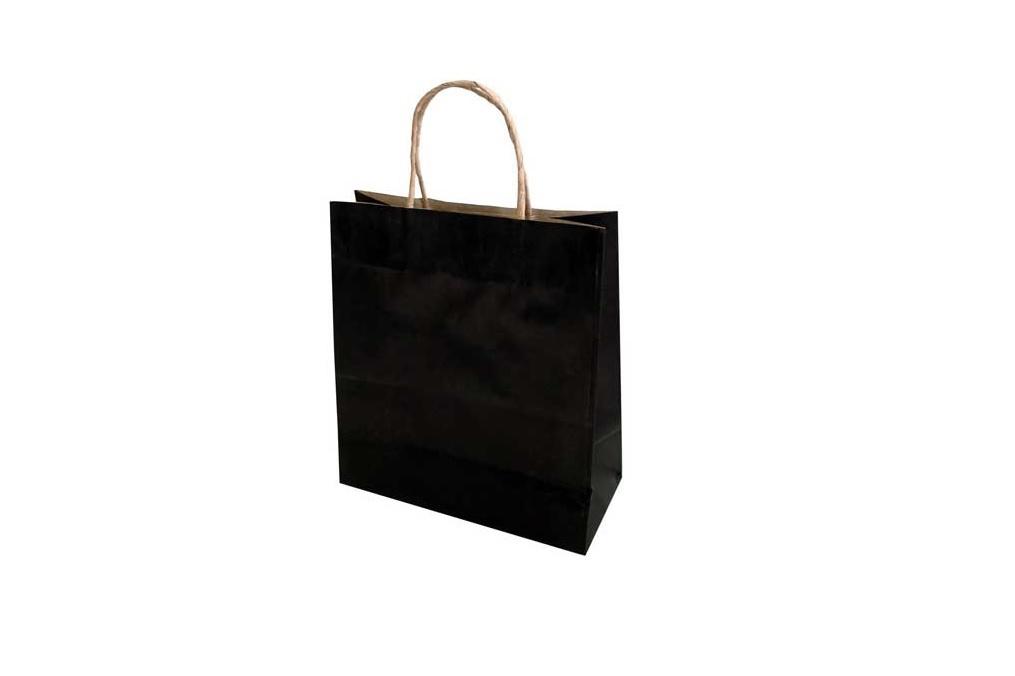 Mała torba prezentowa jednokolorowa, ekologiczna, czarna. Wymiary: 22x10x25 cm