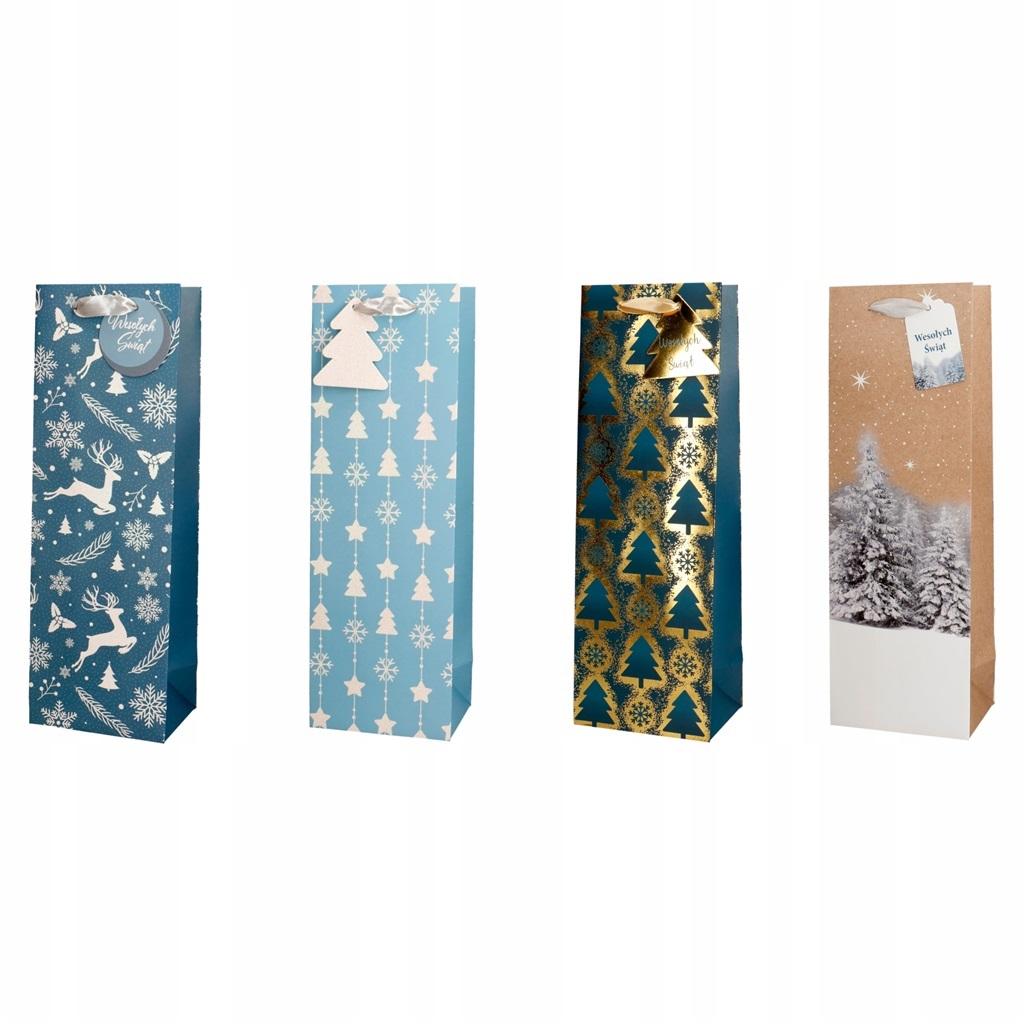 Torba prezentowa na butelkę12x36 Świąteczna mix