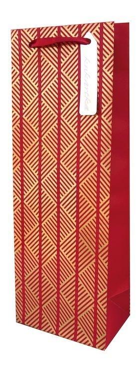 Torba na butelkę QB-091 Torby Kukartka z serii Q są wykonane z grubego, satynowego papieru, mają zdobienia ze złotej/srebrnej folii i rączki z atłasowej tasiemki. Są piękne, solidnie wykonane i stanowią idealną oprawę dla każdego prezentu.