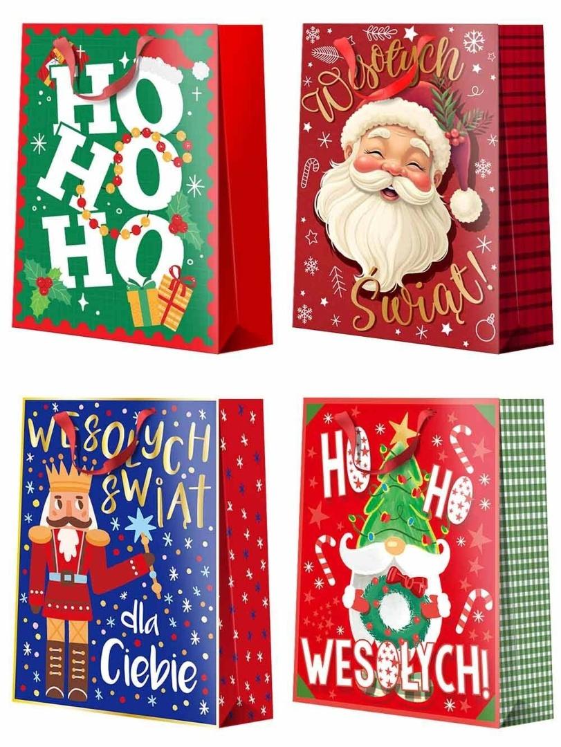 Zestaw świątecznych toreb QJ-003, pakowane po 12 sztuk (4 wzory) w zestawie.