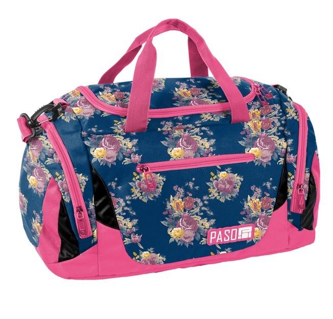 Torba sportowa. Idealna na zajęcia sportowe, fitness bądź krótkie wyjazdy. Pojemna komora główna, mała kieszeń na froncie, 2 kieszenie boczne (w tym jedna na obuwie). Dwa uchwyty do przenoszenia, pasek na ramię z osłonką.