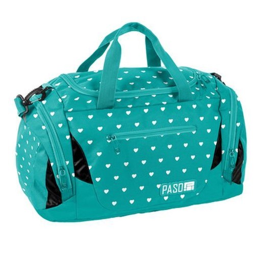 Torba sportowa. Idealna na zajęcia sportowe, fitness bądź krótkie wyjazdy. Pojemna komora główna, mała kieszeń na froncie, 2 kieszenie boczne (w tym jedna na obuwie). Dwa uchwyty do przenoszenia, pasek na ramię z osłonką.