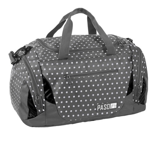 Torba sportowa. Idealna na zajęcia sportowe, fitness bądź krótkie wyjazdy. Pojemna komora główna, mała kieszeń na froncie, 2 kieszenie boczne (w tym jedna na obuwie). Dwa uchwyty do przenoszenia, pasek na ramię z osłonką. Materiał Polyester/PVC Rozmiar 25X47X25 cm waga 480 g