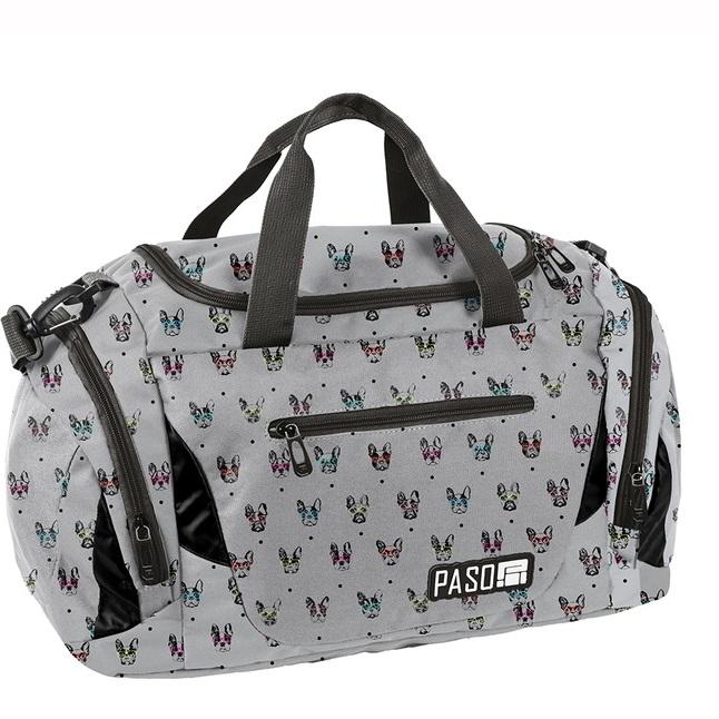 Torba sportowa szara w pieski. Idealna na basen, zajęcia sportowe, fitness. Świetnie sprawdzi się również podczas wyjazdów weekendowych czy wakacyjnych. Torba posiada jedną pojemną komorę, dwie kieszenie boczne, spośród których jedna jest specjalnie przeznaczona do przechowywania obuwia. Wyposażona jest w usztywniane dno, regulowany pasek na ramię z osłonką oraz dwa wygodne uchwyty do przenoszenia. Jej nowoczesny design i niebanalne wzornictwo daje wyjątkowy efekt, który przykuwa wzrok. W Paso sięgamy po solidne produkty z przemyślaną konstrukcją, które sprawdzą się w każdych warunkach.