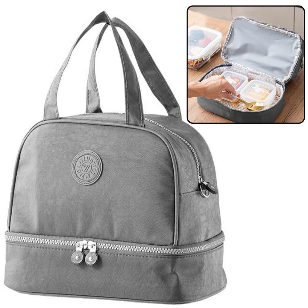 PRZENOŚNA TORBA TERMICZNA NA LUNCH SZARA Funkcjonalna i stylowa torba termiczna na lunch to idealne rozwiązanie dla osób aktywnych, które cenią sobie wygodę, świeżość i estetykę przechowywania posiłków w każdych warunkach - w pracy, szkole, podróży czy na pikniku. Dzięki dwuwarstwowej konstrukcji oraz izolowanej powłoce termicznej, torba skutecznie utrzymuje temperaturę przechowywanych produktów - zarówno ciepłych dań, jak i zimnych napojów czy przekąsek. Główna, dolna komora charakteryzuje się dużą pojemnością i z łatwością pomieści lunchboxy, owoce, napoje, butelki lub kubki termiczne. Górna kieszeń natomiast została zaprojektowana z myślą o drobiazgach i mniejszych dodatkach, takich jak batoniki, jogurty, serwetki czy sztućce - dzięki niej zawartość pozostaje uporządkowana i łatwo dostępna. Dodatkowym atutem jest regulowany pas na ramię, który pozwala na wygodne noszenie torby. Pasek można w każdej chwili łatwo odpiąć, dzięki czemu torba zyskuje kompaktowy, klasyczny wygląd i może być noszona wyłącznie za uchwyty. Torba wykonana została z wysokiej jakości materiałów, które są trwałe, odporne na codzienne zużycie oraz łatwe do utrzymania w czystości. Praktyczne zamki błyskawiczne umożliwiają szybki dostęp do wnętrza. Szary kolor oraz nowoczesny i elegancki design sprawiają, że torba staje się uniwersalna dla każdego użytkownika - niezależnie od wieku. To idealne akcesorium dla wszystkich, którzy chcą zadbać o posiłki poza domem w sposób funkcjonalny i stylowy. SPECYFIKACJA: Wymiary: ok. 27 x 25 x 16 cm Materiał: Poliester, wysokiej jakości tkanina z izolacją termiczną Kolor: Szary Kieszenie: Dwie Zamykanie: Zamek błyskawiczny ZAWARTOŚĆ ZESTAWU: 1 torba termiczna z podwójną komorą odpinany pas regulowany