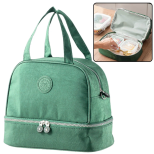 PRZENOŚNA TORBA TERMICZNA NA LUNCH ZIELONA Funkcjonalna i stylowa torba termiczna na lunch to idealne rozwiązanie dla osób aktywnych, które cenią sobie wygodę, świeżość i estetykę przechowywania posiłków w każdych warunkach - w pracy, szkole, podróży czy na pikniku. Dzięki dwuwarstwowej konstrukcji oraz izolowanej powłoce termicznej, torba skutecznie utrzymuje temperaturę przechowywanych produktów - zarówno ciepłych dań, jak i zimnych napojów czy przekąsek. Główna, dolna komora charakteryzuje się dużą pojemnością i z łatwością pomieści lunchboxy, owoce, napoje, butelki lub kubki termiczne. Górna kieszeń natomiast została zaprojektowana z myślą o drobiazgach i mniejszych dodatkach, takich jak batoniki, jogurty, serwetki czy sztućce - dzięki niej zawartość pozostaje uporządkowana i łatwo dostępna. Dodatkowym atutem jest regulowany pas na ramię, który pozwala na wygodne noszenie torby. Pasek można w każdej chwili łatwo odpiąć, dzięki czemu torba zyskuje kompaktowy, klasyczny wygląd i może być noszona wyłącznie za uchwyty. Torba wykonana została z wysokiej jakości materiałów, które są trwałe, odporne na codzienne zużycie oraz łatwe do utrzymania w czystości. Praktyczne zamki błyskawiczne umożliwiają szybki dostęp do wnętrza. Zielony kolor oraz nowoczesny i elegancki design sprawiają, że torba staje się uniwersalna dla każdego użytkownika - niezależnie od wieku. To idealne akcesorium dla wszystkich, którzy chcą zadbać o posiłki poza domem w sposób funkcjonalny i stylowy. SPECYFIKACJA: Wymiary: ok. 27 x 25 x 16 cm Materiał: Poliester, wysokiej jakości tkanina z izolacją termiczną Kolor: Zielony Kieszenie: Dwie Zamykanie: Zamek błyskawiczny ZAWARTOŚĆ ZESTAWU: 1 torba termiczna z podwójną komorą odpinany pas regulowany