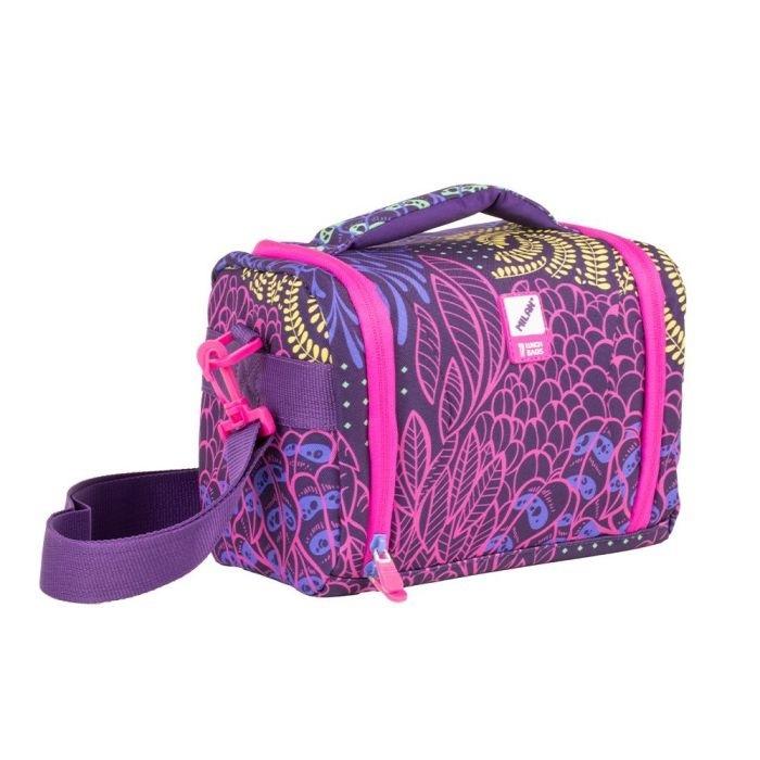Izotermiczna duża torba na żywność z kolekcji ŚWIETLIKI. Posiada izolowane na zimno i na gorąco wnętrze dla lepszej konserwacji żywności. Praktyczna kieszeń wewnętrzna na suwak. Łatwa dostępność do wnętrza dzięki pełnemu otwarciu klapy. Regulowany i odpinany pasek na ramię. Nadruk prezentujący różne formy roślinności, przywołuje na myśl środowisko, w którym żyją świetliki. Kolory są tak jasne, jak światło świetlików: liliowy, fuksja, żółty i zielony, które wyróżniają się na ciemnoliliowym tle. Materiał zewnętrzny: poliester, podszewka izotermiczna (P.E.V.A.). Rozmiar torby: 24,5 x 20 x 16 cm. Pojemność torby: 5 litrów.