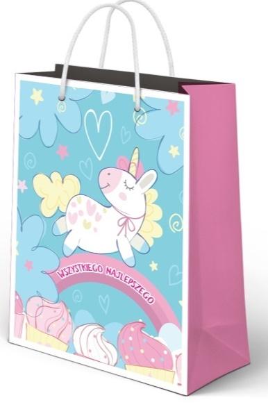 Torby Kukartka z serii T są kolorowe i wykonane z pokrywanego błyszczącą powłoką papieru. Atrakcyjnym dodatkiem toreb są uchwyty z atłasowej tasiemki. Te kolorowe torby od razu zwracają uwagę i stanowią idealną oprawę dla każdego prezentu.