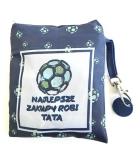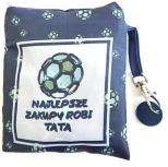 ZDJĘCIE TYMCZASOWE * wykonana z wytrzymałej tkaniny poliestrowej * na etui posiada dedykację "Najlepsze zakupy robi Tata " * doskonały pomysł na prezent dla Taty, nie tylko z okazji jego święta * posiada karabińczyk, na którym zawieszony jest żeton do wózka na zakupy * złożona do zajmuje niewiele miejsca * etui zamykane na zatrzask * można prać