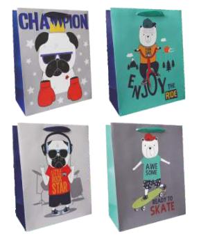 Torby prezentowe 26x32, MIX 4 wzorów po 3 sztuki.