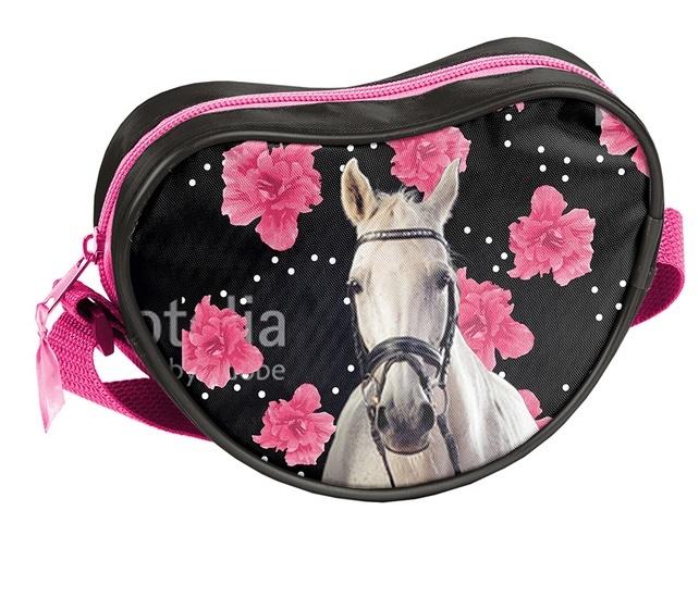 Torebka na ramię, jedna komora, kształt serduszka, regulowany pasek.