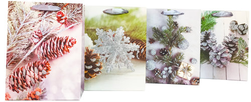 Torebka Lux 210 gsm z brokatem Szyszka Set 1 Średnia A5 (18x24x8) Cena dotyczy 1 opakowania - 12 szt