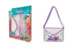 Zestaw zawiera torebkę na ramię w modny wzór do pokolorowania oraz sześć markerów. Torebka ma wymiary 24 x 17 cm. Górna część torebki wykończona jest błyszczącą tkaniną. Torebka wyposażona jest w regulowany pasek na ramię. Wzór do pokolorowania przedstawia napis Shine oraz popowe wzory. Kolory markerów w zestawie: różowy, pomarańczowy, jasno niebieski, zielony, fioletowy, granatowy.