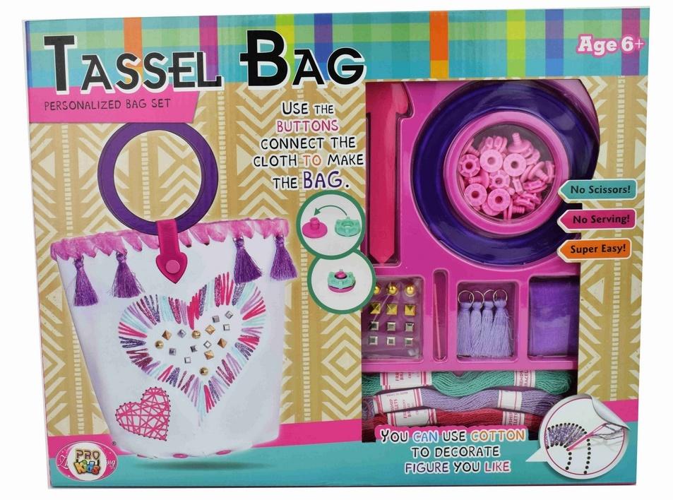 Stwórz własną, oryginalną i niepowtarzalną torebkę! Można udekorować torebkę według własnego pomysłu wykorzystując dołączone do zestawu akcesoria. Zawiera: torebkę, kolorowe muliny, dżety, dekoracyjne chwosty oraz guziki służące do łączenia poszczególnych elementów torebki.