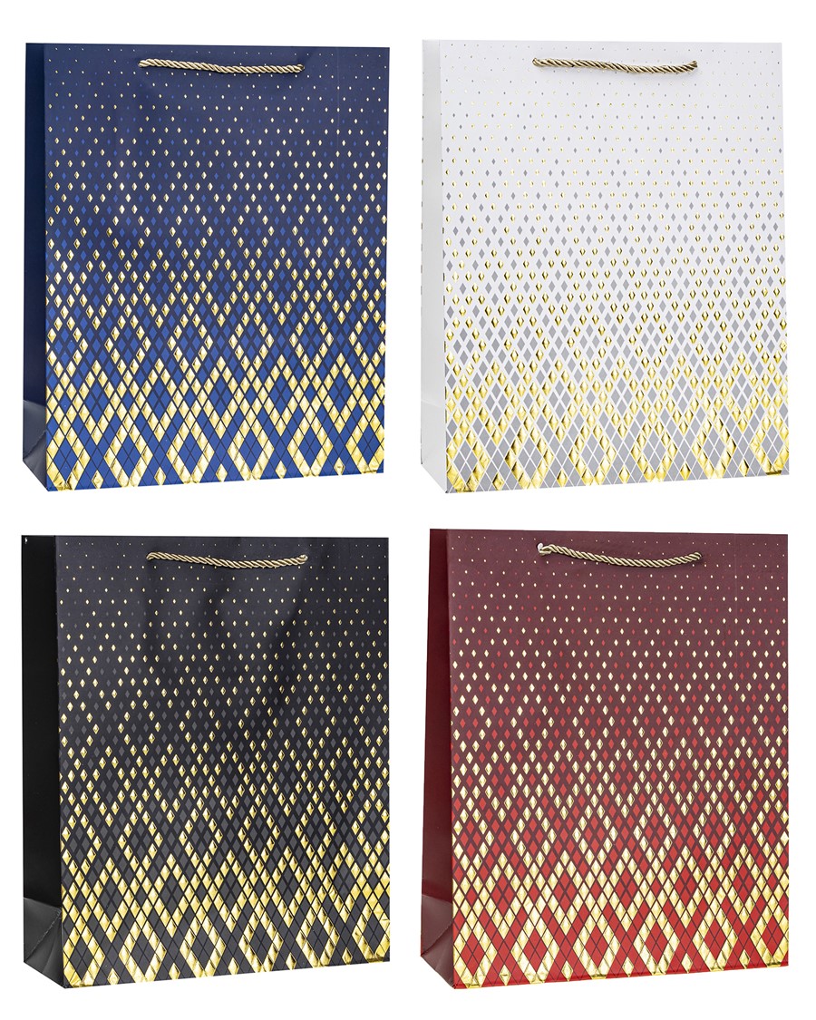 Torebka ozdobna z brokatem Lux 210 gsm, pakowana po 12 sztuk, mix 4 wzorów, TG-23190-HS-A5