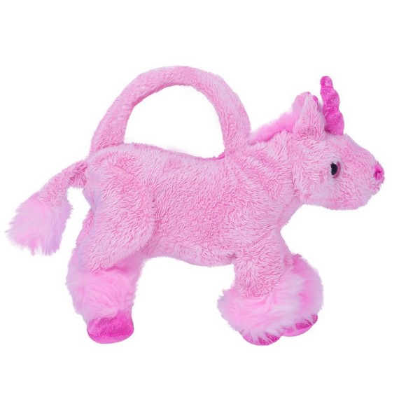 Super designerska torebka w kształcie jednorożca koloru różowego. Przeznaczona dla dziewczynek. Zasuwana na zamek błyskawiczny. 28CM